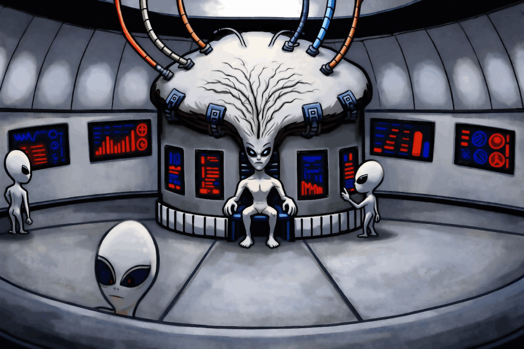 Convergence Nodes were engineered to solve the problem of long-distance communication, and their massive brains contain specialized organs that can send and receive spatial compression radio signals which they use to network with one another over astronomical distances. Convergence Nodes are little more than massive brains, though they do have a full grey body attached to the brain. The body is largely vestigial, as all the Node’s biological functions are handled through attached biomechanical systems.