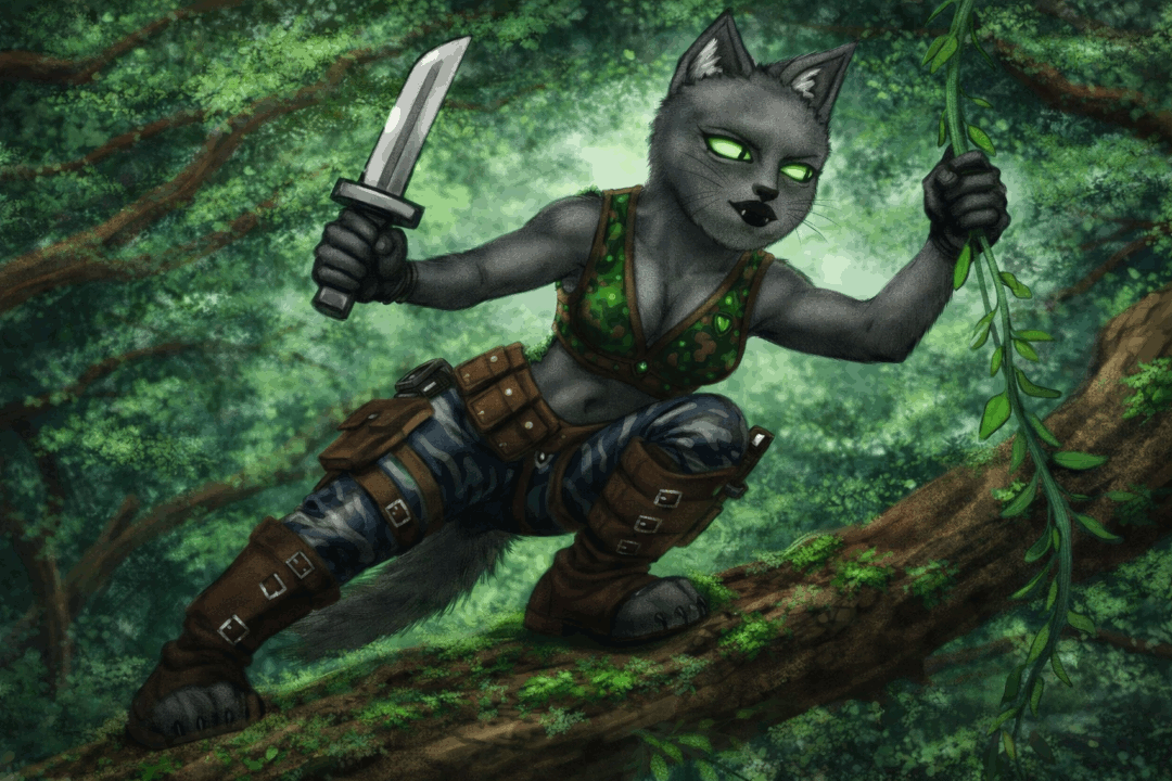 This Edenite has used body modification technology to become the ultimate stealthy hunter. Silent, but deadly... with enhanced senses to track their prey.