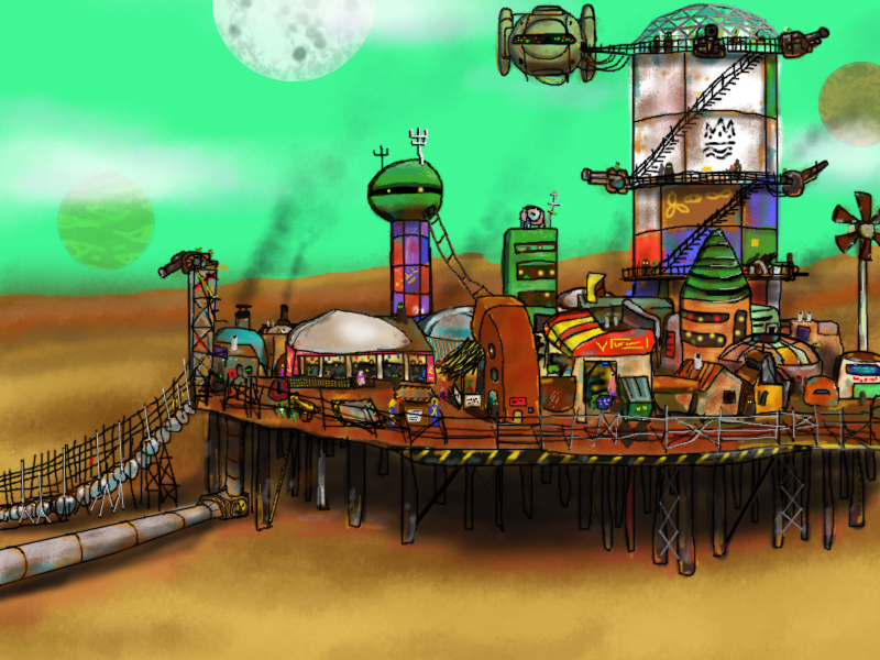 The Stilted City was built by the native Vorgon people of New Albuquerque, and they make up the majority of the population, though many others can be found there as well. The city is constantly being settled by new groups who travel along the trade routes that intersect there.